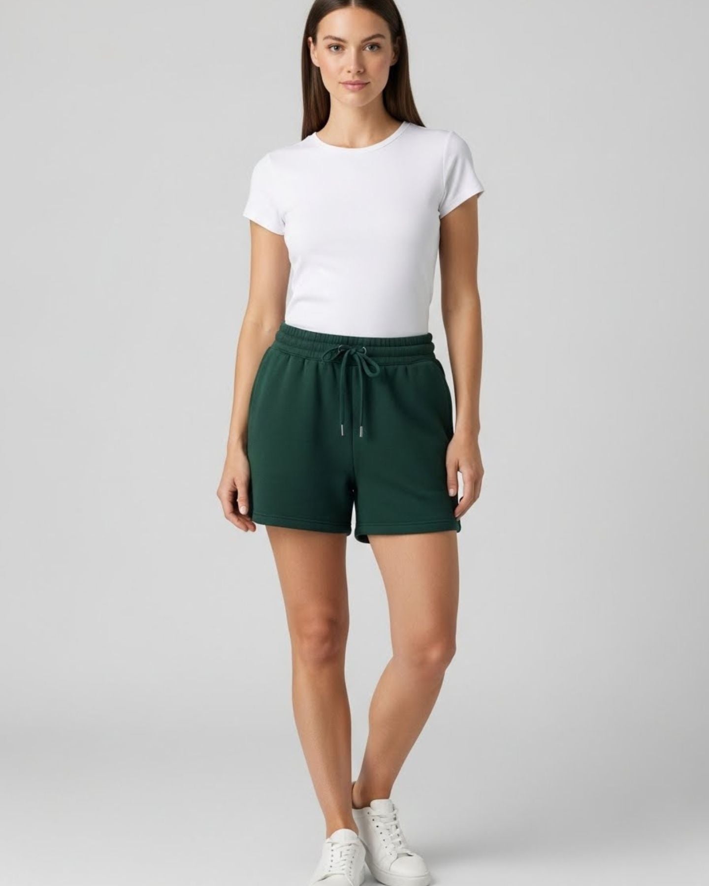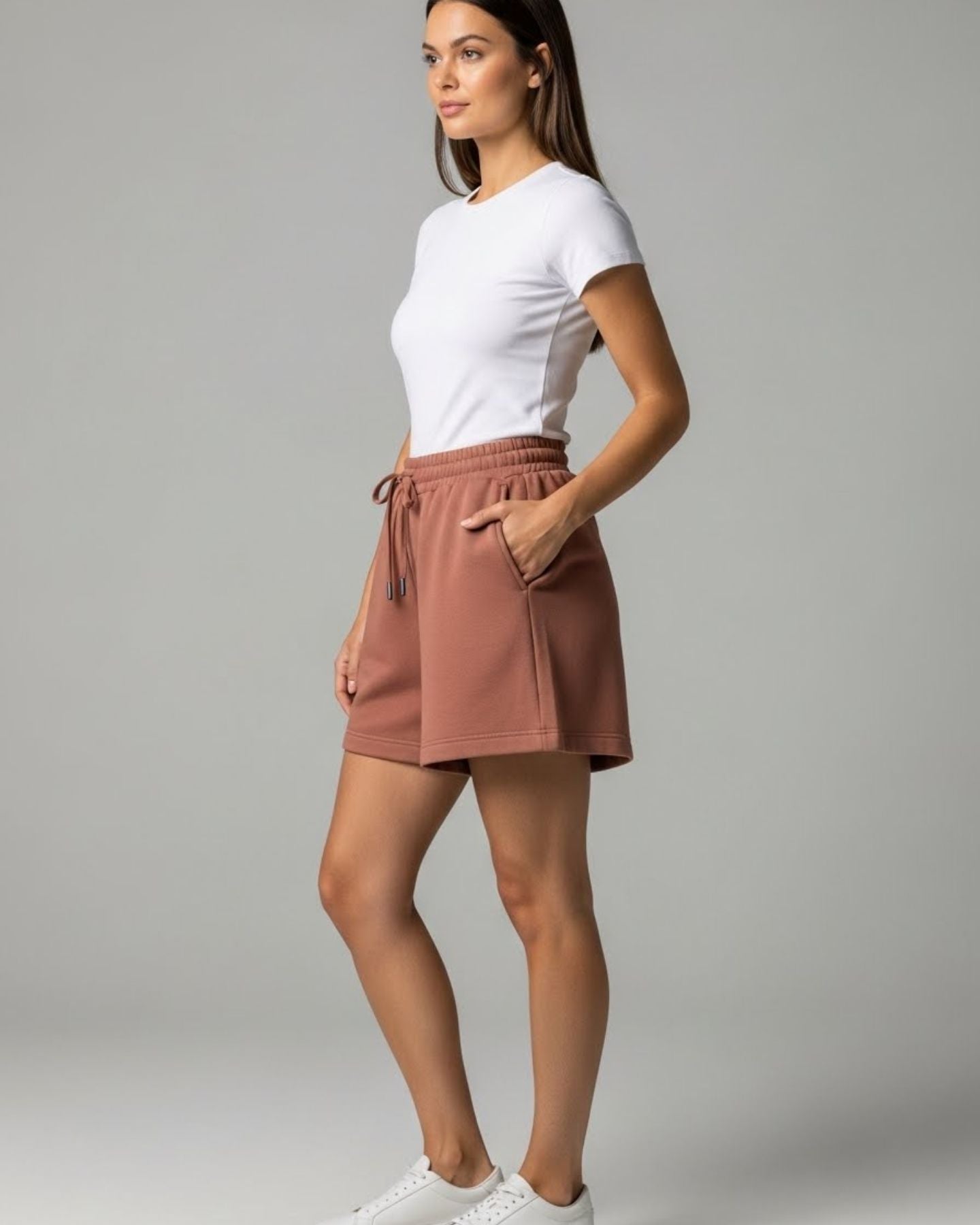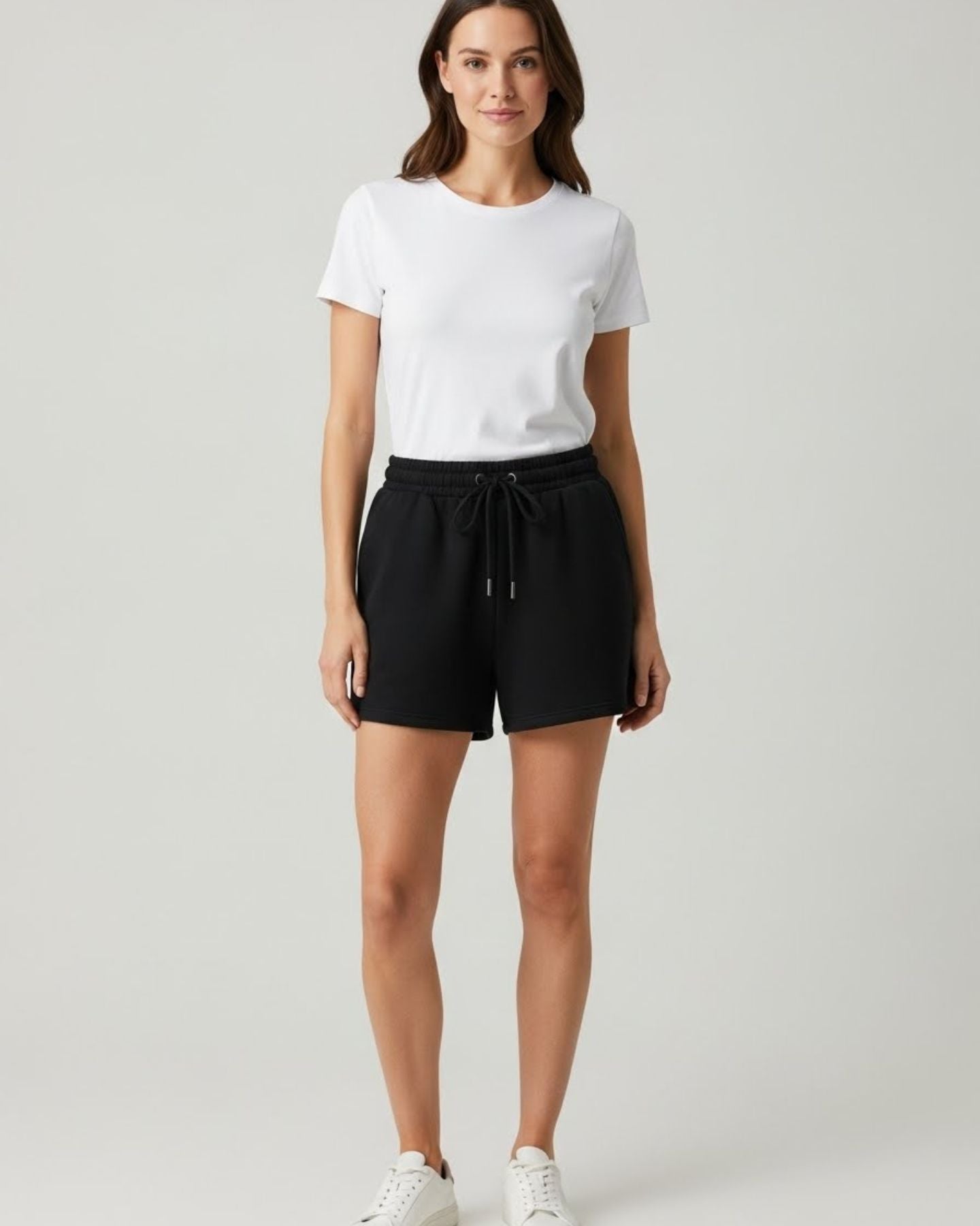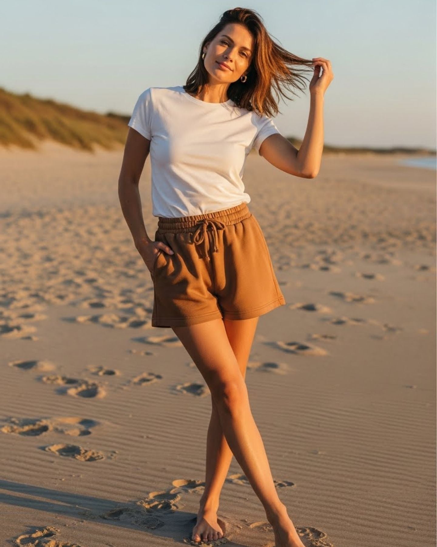 Prendas fabricadas en Chile con 100% algodón peruano, suaves, frescas y sin carda. Su diseño ultra corto de pierna ancha ofrece una caída natural que no aprieta ni roza, dando comodidad real y un look minimalista y premium. Una colección pensada para sentirse ligera, moderna y estética en cada movimiento.