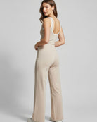 El top incluye copas internas que brindan soporte y evitan transparencias, permitiendo entrenar o moverte con total seguridad. El palazzo cruzado entrega un calce firme pero flexible, que acompaña cada movimiento sin apretar y mantiene su forma incluso después de múltiples lavados.