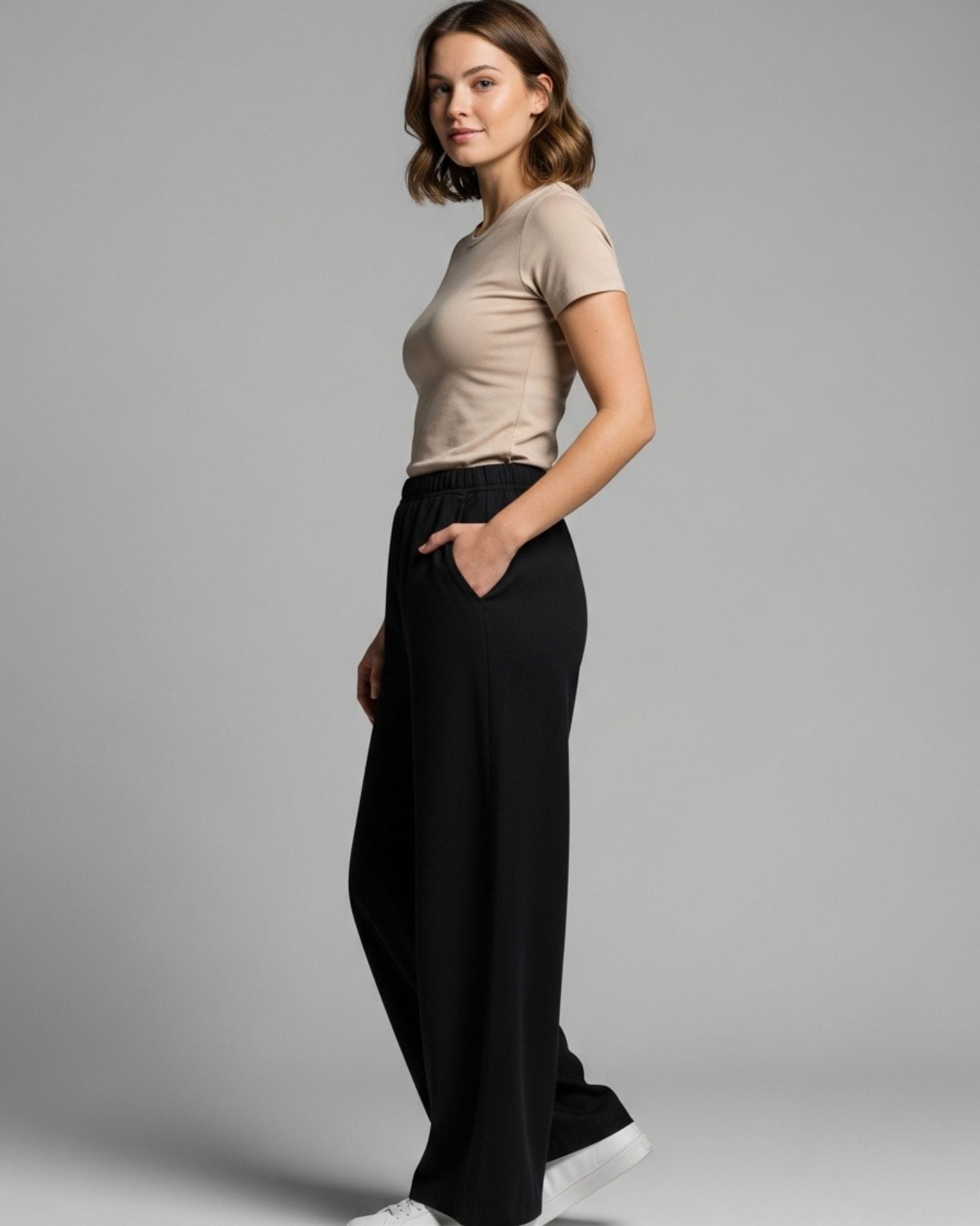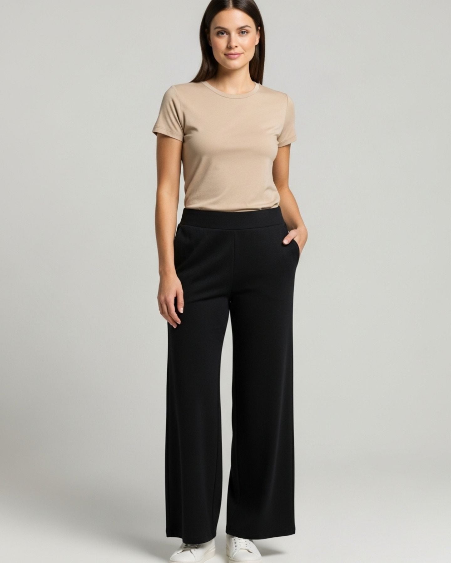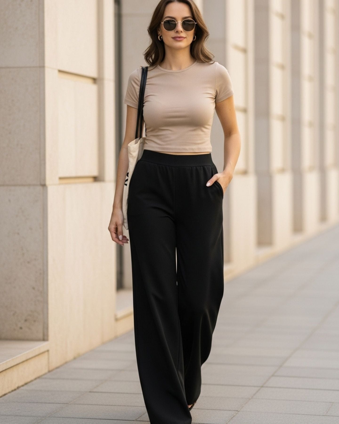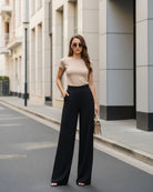 Conjunto Polera Beige y Palazzo Negro - Algodones Prémium